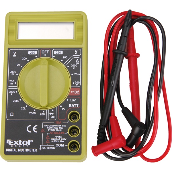 EXTOL CRAFT digitális multiméter; Amper/Volt/Ohm mérő, hangjelző funkcióval, CE, 1 db 9V elem [ 600011 ]