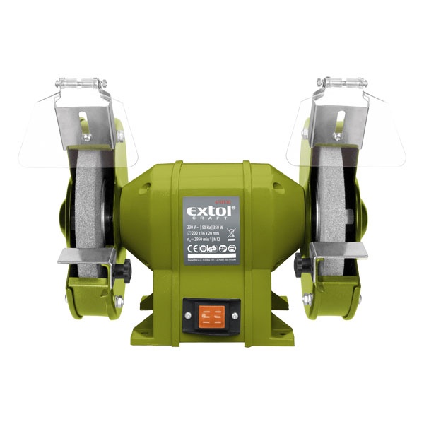 EXTOL kettős köszörűgép 350W, száraz,200×16×20mm, 2950 ford/perc, P36, P80, 11kg [ 410130 ]
