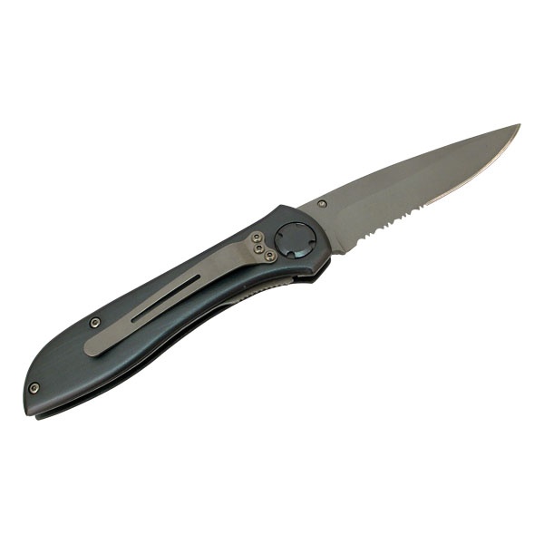 Rozsdamentes acélból készült penge, felületkezeléssel A késpenge fogazása – amely bizonyos típusú anyagok könnyebb vágását segíti elő – lehetővé teszi a kés kis fűrészként történő használatát is. Biztosítóelem akadályozza meg a kés véletlenszerű, akaratlan bezárását. Kiváló minőségű alumíniumöntvényből készült markolat, amely a késnek az övre való felfüggesztéséhez fémcsattal van ellátva.