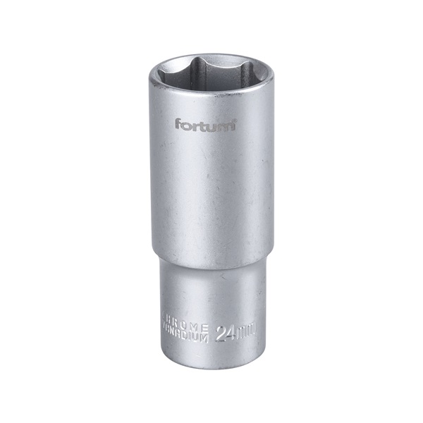 FORTUM garancia dugófej, hosszított, 1/2″, 24mm, 61CrV5, mattkróm, 77mm hosszú FORTUM [ 4700524 ]