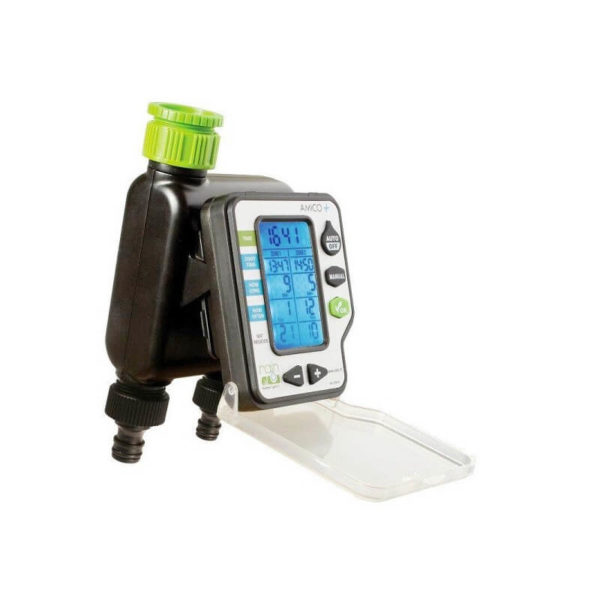 A Rain Amico 2+ egy csapra szerelhető, elemmel működő 2 zónás digitális öntözésvezérlő, beépített mágnesszeleppel.