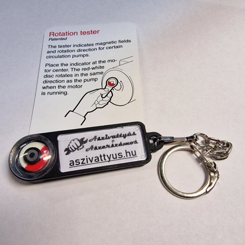 Mechanikus forgásirány jelző kulcstartóra szerelve.